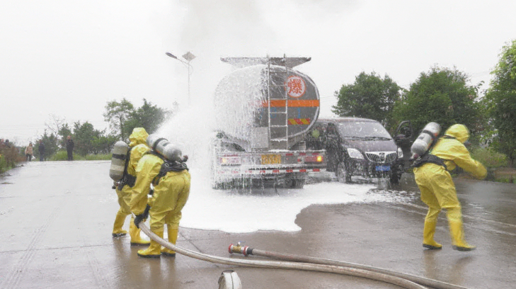 消防人员开展现场灭火堵漏工作