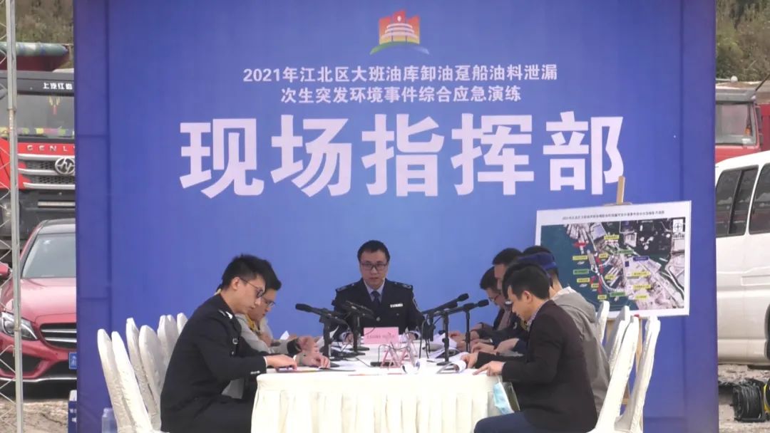 江北区成功举办“2021年大班油库卸油趸船油料泄漏次生突发环境事件综合应急演练”